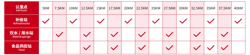① 组委会在起点及终点设立固定医疗站,赛事沿途自5公里起,至32.5公里(含),每隔2.5公里设置固定医疗站。自34公里(含)起,每隔1公里设置固定医疗站。现场医务人员有权根据运动员身体状况中止运动员继续比赛并收取其号码布;如运动员不听从医护人员建议,坚持参赛产生的一切后果及责任由运动员本人承担。