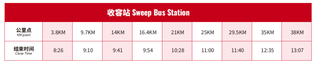 ①如运动员无法完成比赛,可在赛道沿途的收容站乘车至终点取衣。被收容的运动员请配合裁判登记个人信息并在运动员号码布上进行标记。