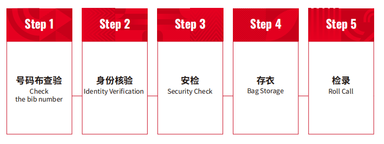 运动员起点入场须进行号码布查验、身份核验及安全检查,请规划好时间前往起点,建议至少于7:00前入场。