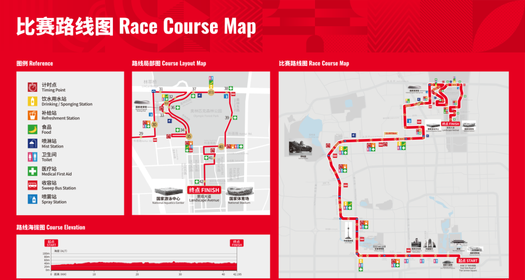 赛前仔细阅读、收藏本文,你将掌握从广场东侧路至奥林匹克公园中心区景观大道的每一处细节——从容出发,安全完赛,一同创造北马赛道属于自己42.195公里的精彩!